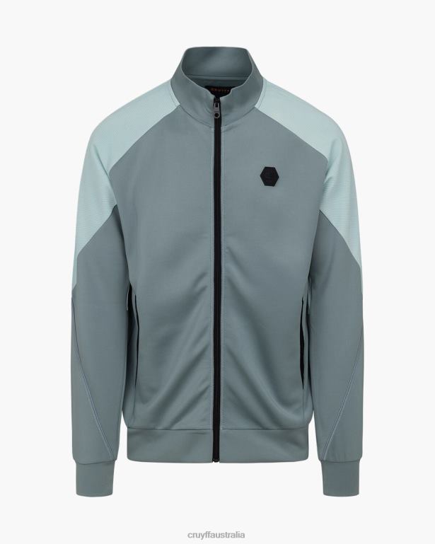 The Cruyff Zayne Scuba Track Top in Lead Blue is a regular-fit tracksuit jacket made from a rich blend of 95% polyester and 5% elastane. The Ottoman rib panels on the shoulders add a technical feel. Equipped with two pockets with zippers and a rubber Cruyff-badge on the chest.