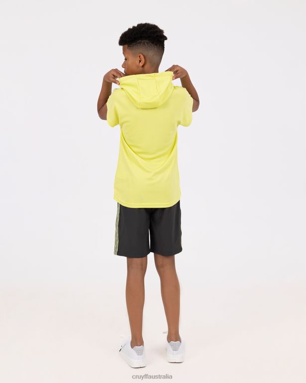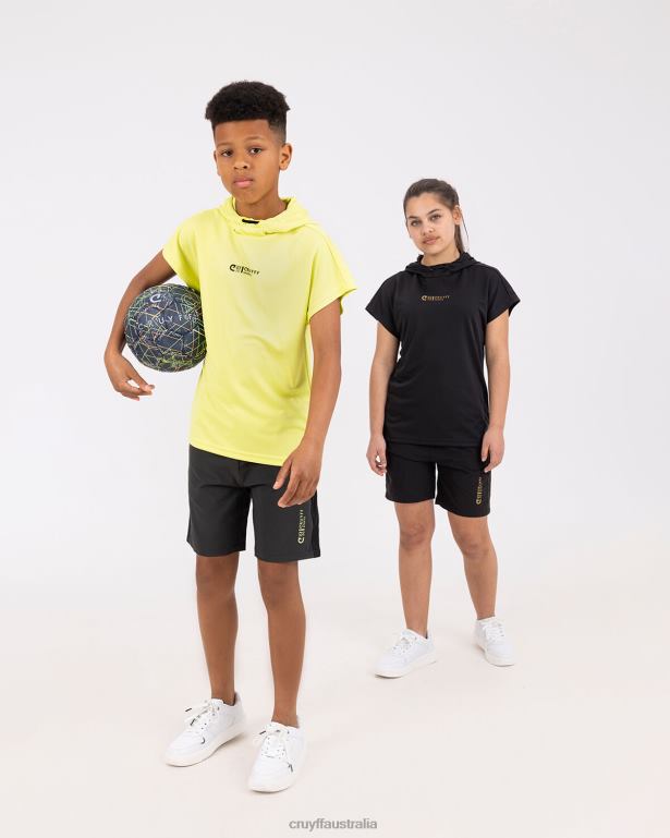 The Cruyff Box Suit for Junior in Olive Green and Light Green. A T-shirt with a regular fit and short sleeves. The T-shirt has a hood and a Cruyff Sports print on the chest. The polyester material is breathable, moisture repellent, temperature-regulating and quick-drying. The soft material ensures that the shirt does not rub against the skin during exercise. Combined with the Cruyff Box Short for Junior. Shorts with an elasticated waistband and drawstrings. Enriched with a silicone Cruyff Sports logo on the left leg.