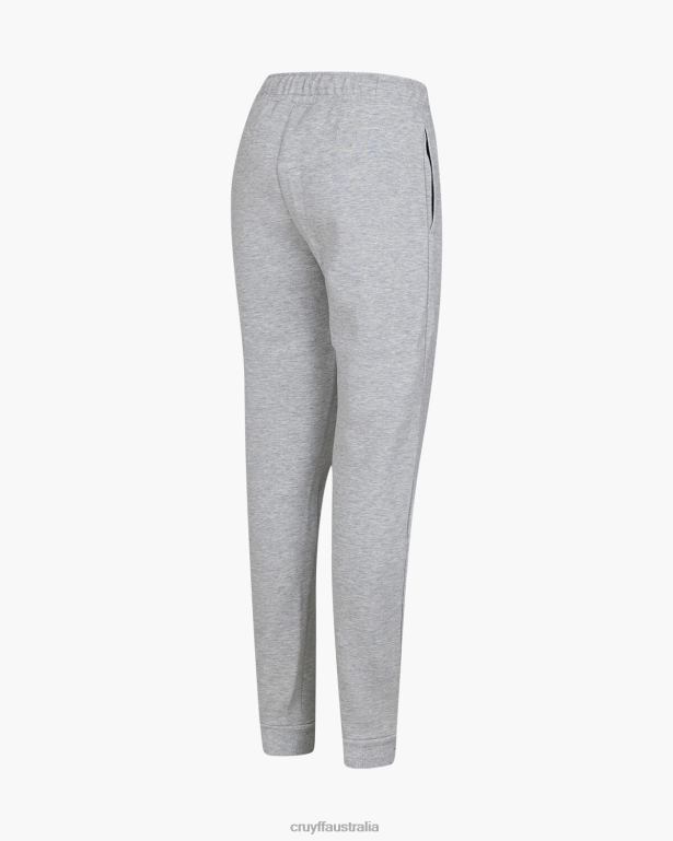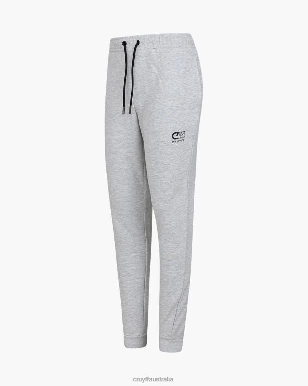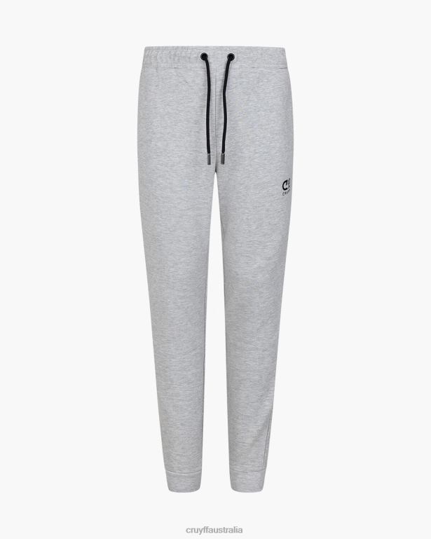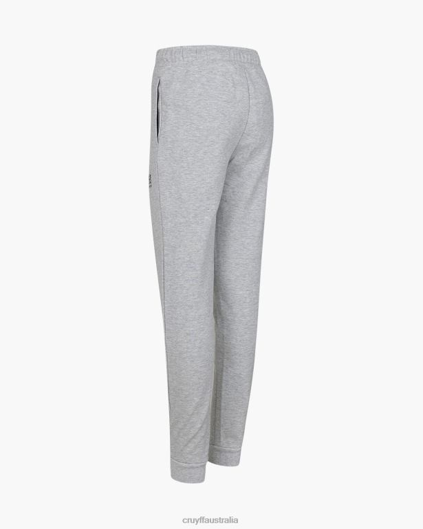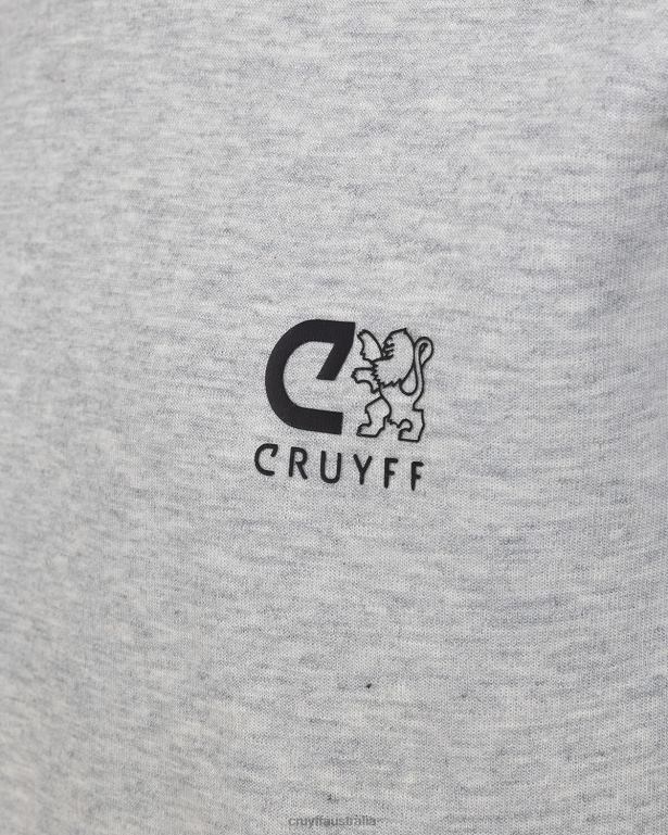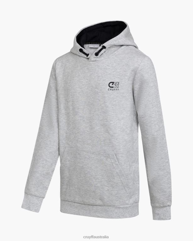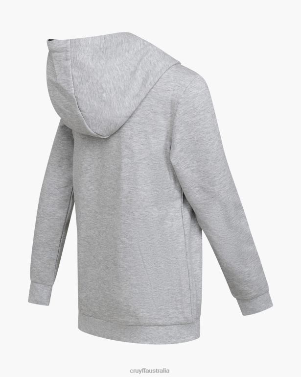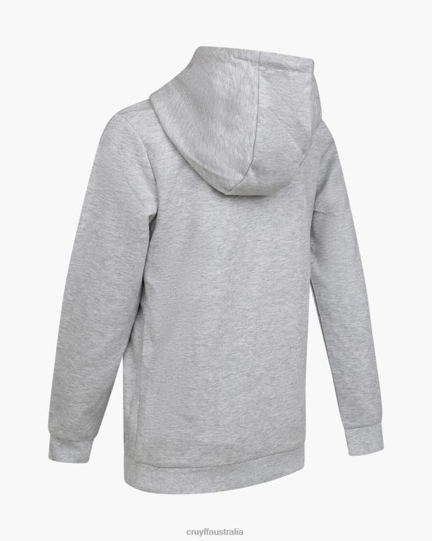 The Cruyff Denver suit for kids in duffle bag grey. A jogging suit made from interlock fabric with regular fit. The hoodie is equipped with a hood with drawstrings, a kangaroo pocket and black C-Lion branding on the left chest. The jogging pants is equipped with two side pockets, drawstrings and black C-Lion branding.